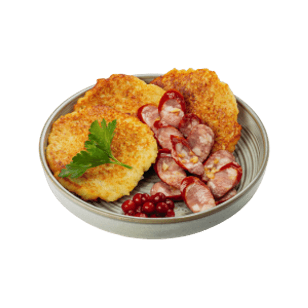 Драники с охотничьими колбасками